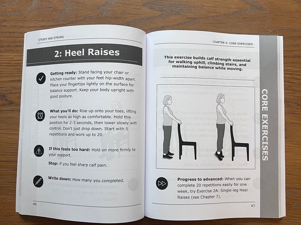 Steady & Strong is a 12-week fall prevention program developed by a physical therapist with over 25 years of clinical experience. This book provides evidence-based exercises you can do at home using only a chair and wall space - now available as large print paperback or ebook at Amazon!